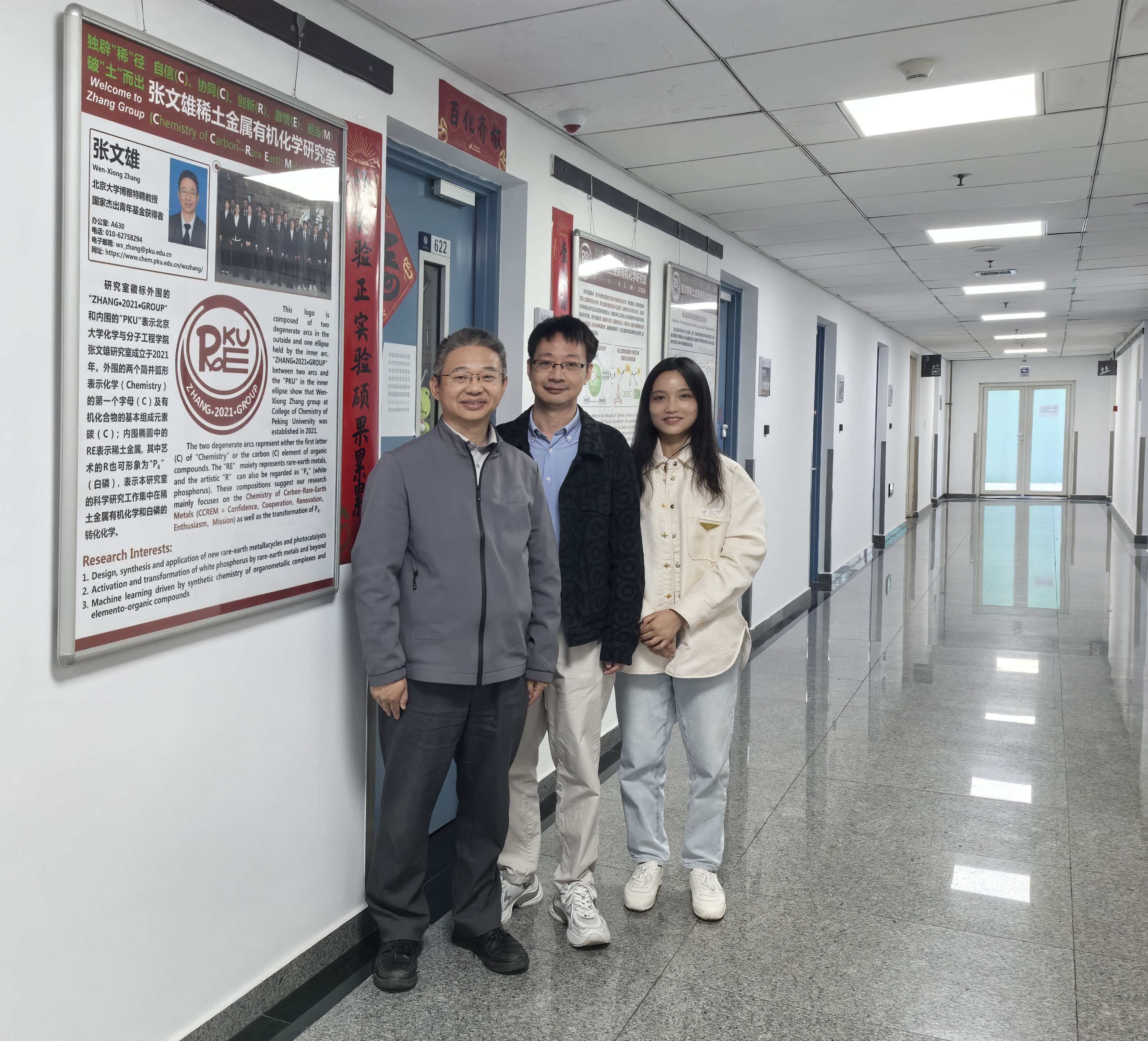 热烈欢迎黄哲博士回组访问! 时间:2025-05-04 来源:作者: 字体: 【小】 【中】 【大】 5月3日,在3003新葡官方网站校庆期间,毕业生黄哲博士携家属回组访问,他在张老师的带领下参观新实验室以及展板。黄哲博士是张老师和席老师指导的2015级博士生,于2020年从组里博士毕业,他在博士期间主要专注于金属有机化学合成及芳香性的研究,感谢黄哲博士回组访问!