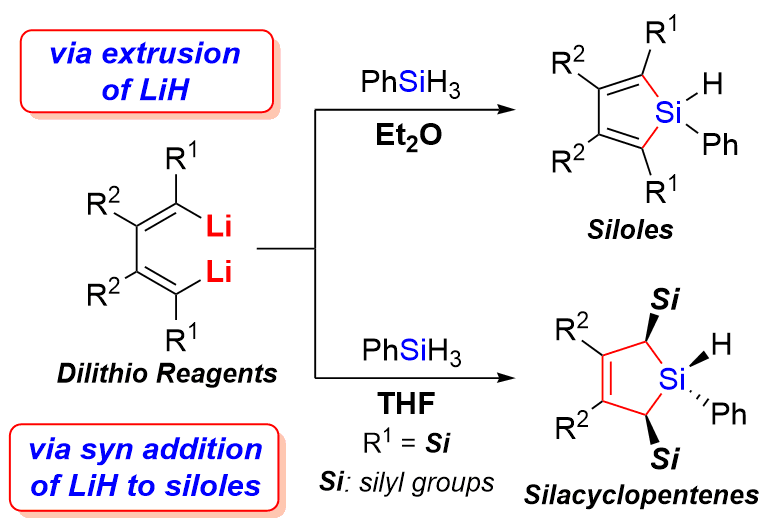 107. Baosheng Wei, Heng Li, Jianhao Yin, Wen-Xiong Zhang, and Zhenfeng Xi*, Reaction of Dilithio Reagents with PhSiH3: Formation of Siloles and 3-Silacyclopentenes,