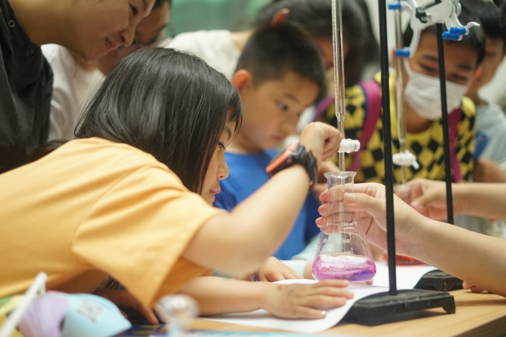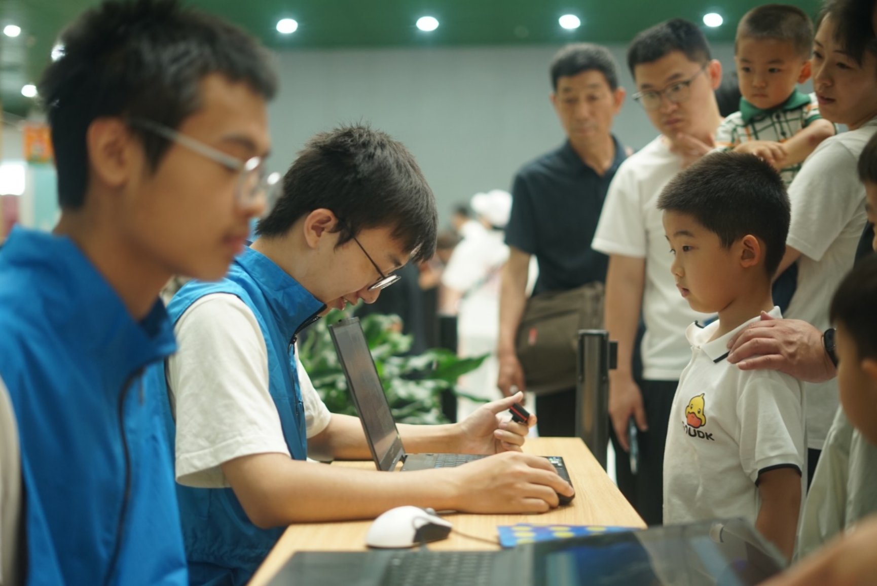 活动中,各个展区熙熙攘攘,观众络绎不绝。在分析化学摊位上,孩子们和家长们围观着酸碱滴定实验,眼睛紧盯着试管中的液体从无色缓缓变为粉红,赞叹声此起彼伏。