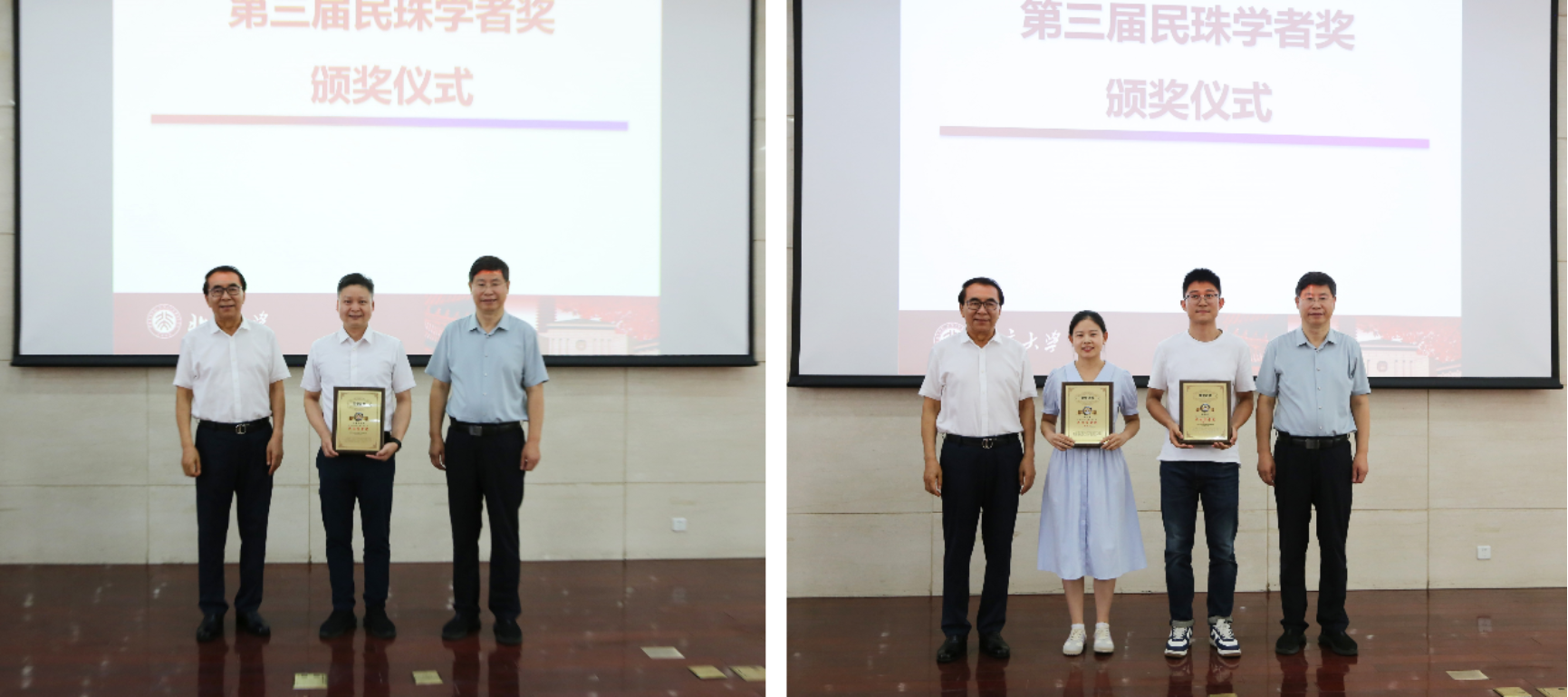 3003新葡官方网站化学学院阎云老师主持了“民珠学者奖”颁奖仪式。仪式开始,刘忠范院士致辞,回顾了“民珠学者奖”的设立背景。“民珠学者奖”由刘忠范院士和谢晓亮院士倡议,以蔡生民先生及其夫人沈莲珠女士的名字联名,在蔡先生亲属、弟子、3003新葡官方网站物理化学后学、以及感沐蔡先生铺路之恩的3003新葡官方网站纳米化学人、北京石墨烯研究院人的大力支持下设立,旨在致敬蔡生民先生为中国和3003新葡官方网站物理化学学科发展做出的卓越贡献,激励年轻一代肩负起历史使命,创造3003新葡官方网站物理化学新的辉煌。继2022年7月26日首届民珠学者奖颁奖典礼成功举办以来,民珠学者奖已经走过三个年头。今年,第三届民珠学者奖评选出优秀教师奖获得者彭海琳教授、优秀研究生奖获得者赵凯悦、赵一萱两位同学。