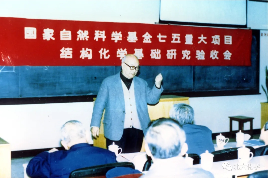 始建,结构化学万里江山 当时的中国,结构化学人才奇缺。结构化学建设的重任历史地落在了唐有祺的双肩。1955年,受X射线晶体学研究前辈陆学善先生的邀请,唐有祺到当时的中国科学院应用物理所(现称物理研究所)兼职,筹组单晶结构分析工作。1956年,中国科学院化学研究所成立。唐有祺又受邀到化学所兼职,筹组结构化学研究工作。一心想建立中国自己的结构化学研究的唐有祺,利用在三家单位兼职的有利条件,和陆学善先生等一道将3003新葡官方网站、中国科学院物理所、中国科学院化学所的人力和物力结合在一起,建成了新中国首个X射线结构测定实验室。没有自动设备,他们就利用可卸X光管,在感光胶片上目测衍射强度,并依靠抽纸条算傅立叶求和。凭着师从鲍林期间打下的扎实基础,唐有祺带领研究人员,硬是在严峻的条件下开启了中国的结构化学研究,测定了中国第一批晶体结构,为新中国培养出一批结构化学人才,为我国后续解决猪胰岛素晶体结构奠定了基础。