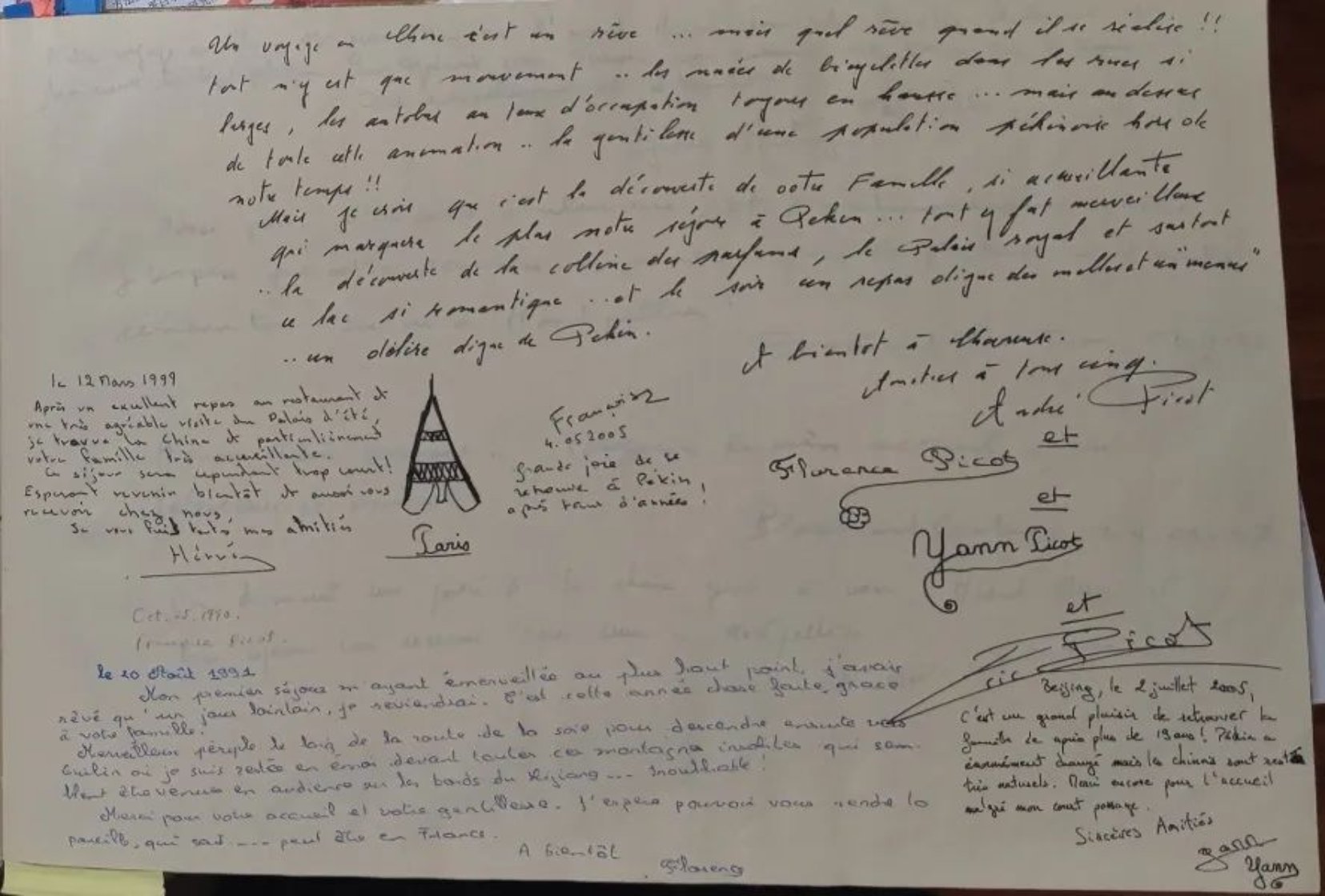 “在与法国同事近半个世纪的学术交流与科研合作过程中,我与他们结下了深厚的友谊。我到法国工作与访问十六次,来访的法国朋友都很希望了解中国人的生活情况,所以我也经常邀请他们到我家里来。法国朋友从我家的生活情况变化见证了中国的发展,第一次来的时候我家厨房用的是煤气罐,第二次来时换成管道天然气,后来家用电器逐步增多,居住环境也显著改观。有人来访事先不通知我们,突然就来个电话说已经在友谊宾馆,要到我家来看一看。我只能把家里最真实的情况展示出来,连准备的时间都没有。法国朋友到我家做客,仅从1987年建留言簿算起,就有百余人次之多。我在巴黎也结识了美国、日本、韩国的朋友,他们听了法国朋友的介绍,到北京来,也喜欢到我家里来坐一坐。”