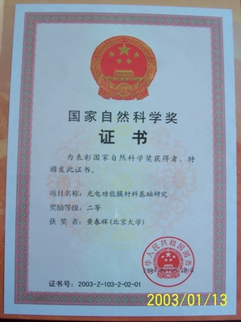Prof. Chunhui Huang has issued Coordination Chemistry of Rare Earth (1997), Ultrathin Films for Optics and Electronics (2001) and Introduction to Organic Light-Emitting Materials and Devices (2005), and joined the composition of Series of Inorganic Chemistry Volume Seven: Scandium and Rare-earth Elements, Rare-earth Elements, etc.. She has been awarded Second and Third Award of National Natural Science of China once, Second Award of Scientific and Technological Progress of National Ministry of Education twice, The Scientific and Technological Progress Award of the Ho Leung Ho Lee Foundation.